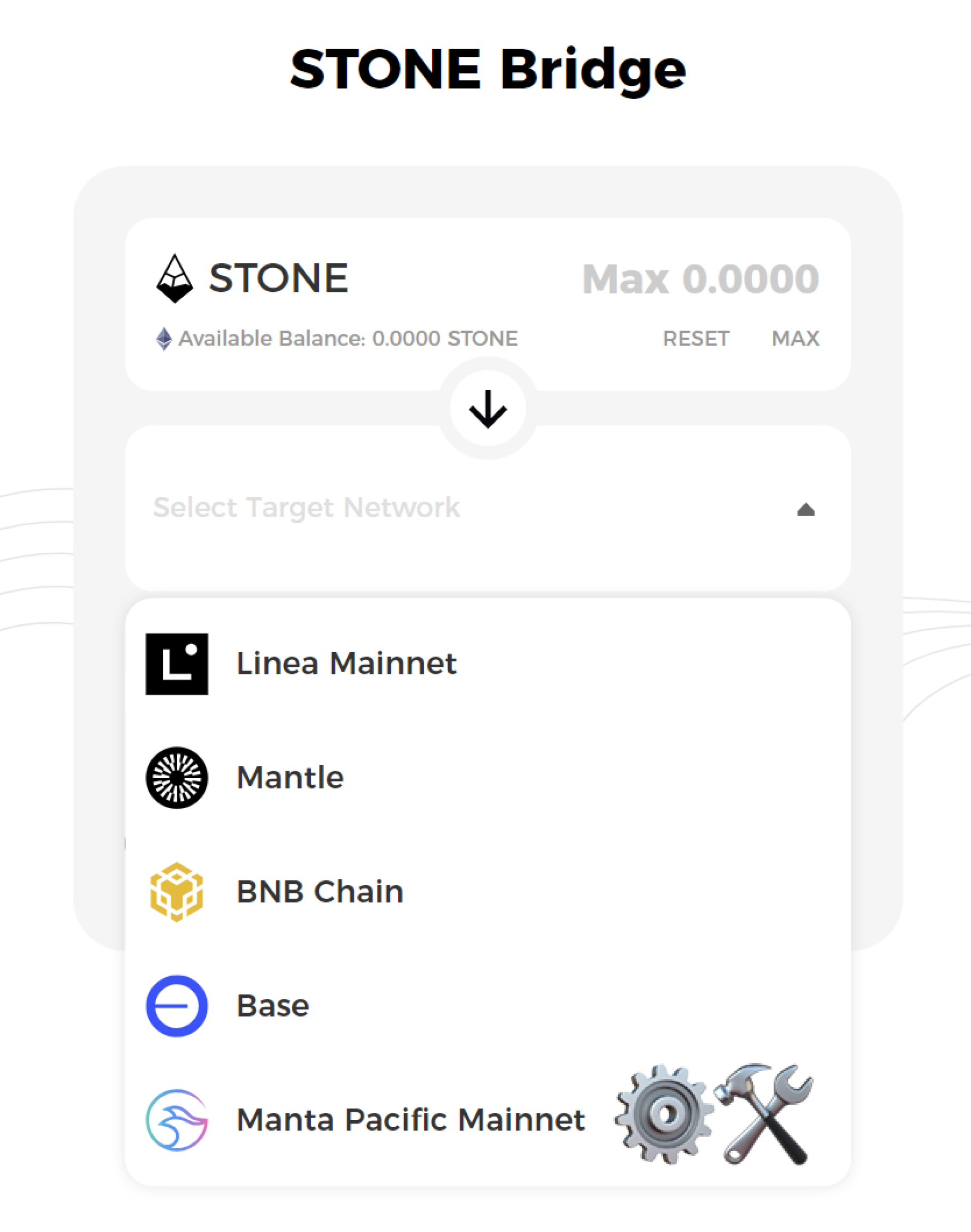 Users can bridge STONE to and from the currently supported chains on StakeStone's website. It is important to note that the bridging from Manta Pacific to Ethereum Mainnet is currently disabled until the end of Manta's New Paradigm.